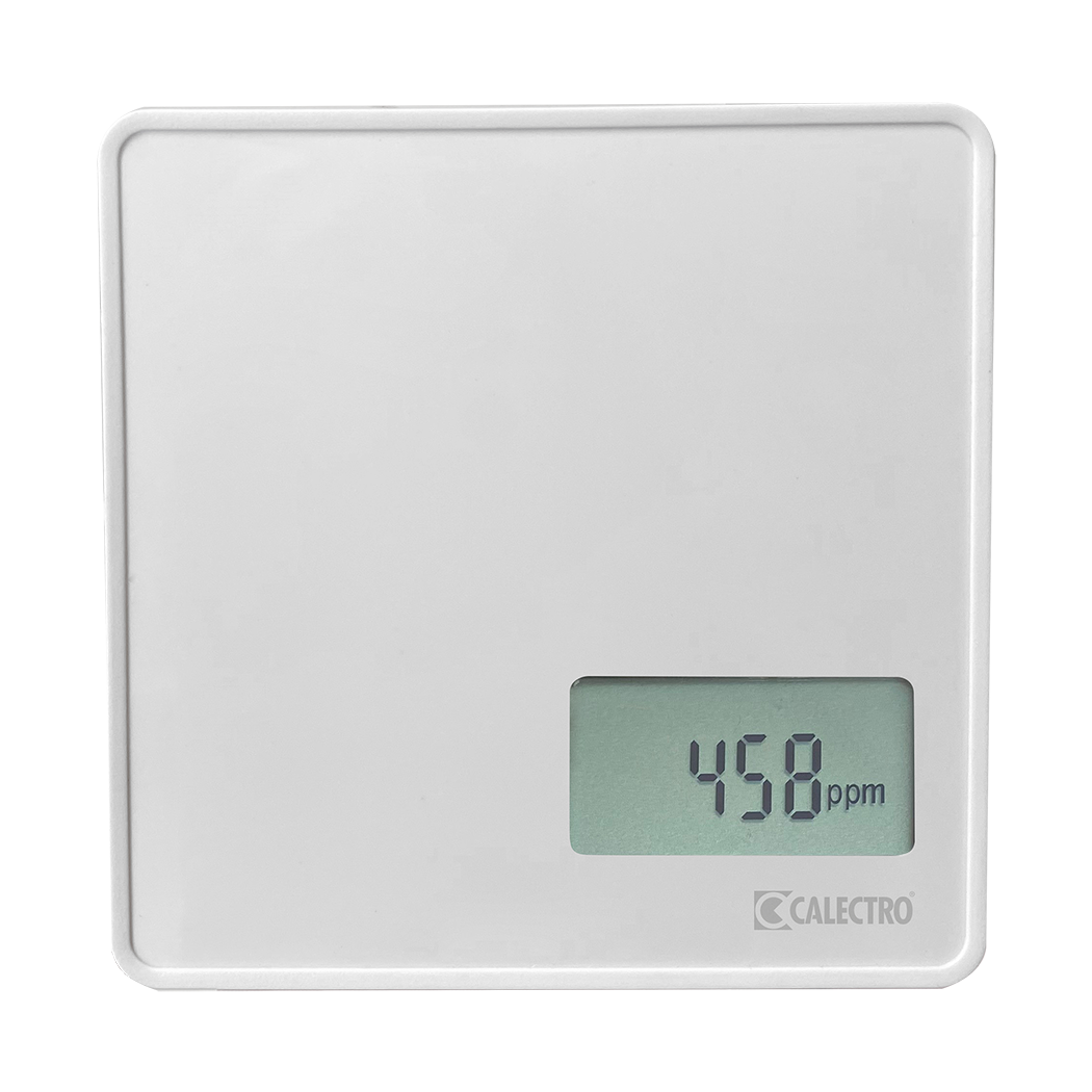 Transmitter with display that measures CO₂ and temperature, for wall mounting.